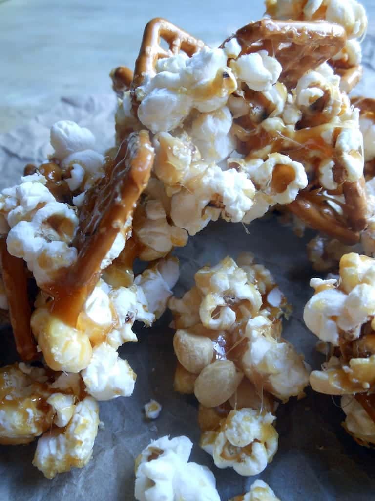Crunchy Caramel Snack Mix Ingredients • 8 cups broken salted pretzels • 20 cups popped popcorn • 4 cups dry roasted peanuts • 3 cups brown sugar ... Read Here